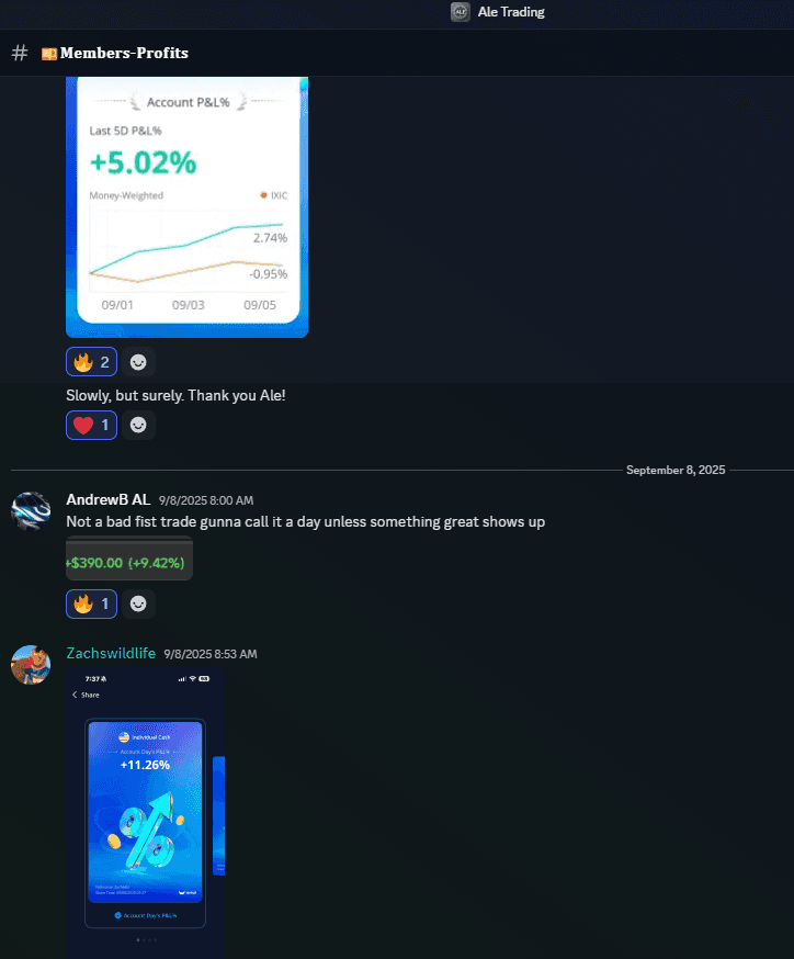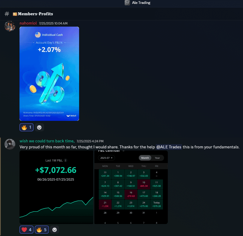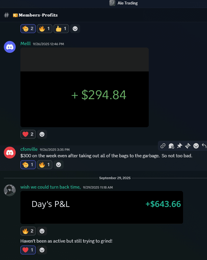 Join Ale Trading for live setups every single day, real-time alerts, and a simple system that favors consistency over lottery plays.